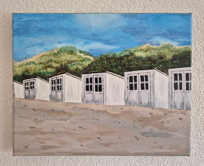 Strandhuisjes in Zeeland in acrylverf